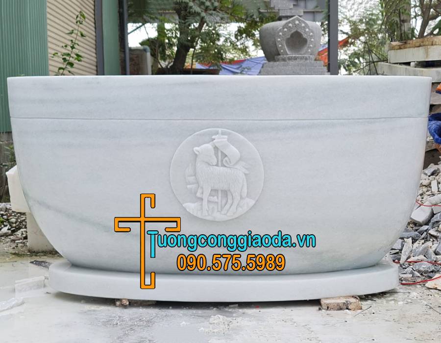 - Mẫu Bàn Thờ Công Giáo Bằng Đá Đẹp Nhất kích thước cao 1m, ngang 3m được hoàn thiện cho khách tại Nam Định. Được chế tác từ chất liệu đá cẩm thạch nguyên khối 100%. Điêu khắc Bàn Thờ Công Giáo Đá theo mẫu của khách hàng.