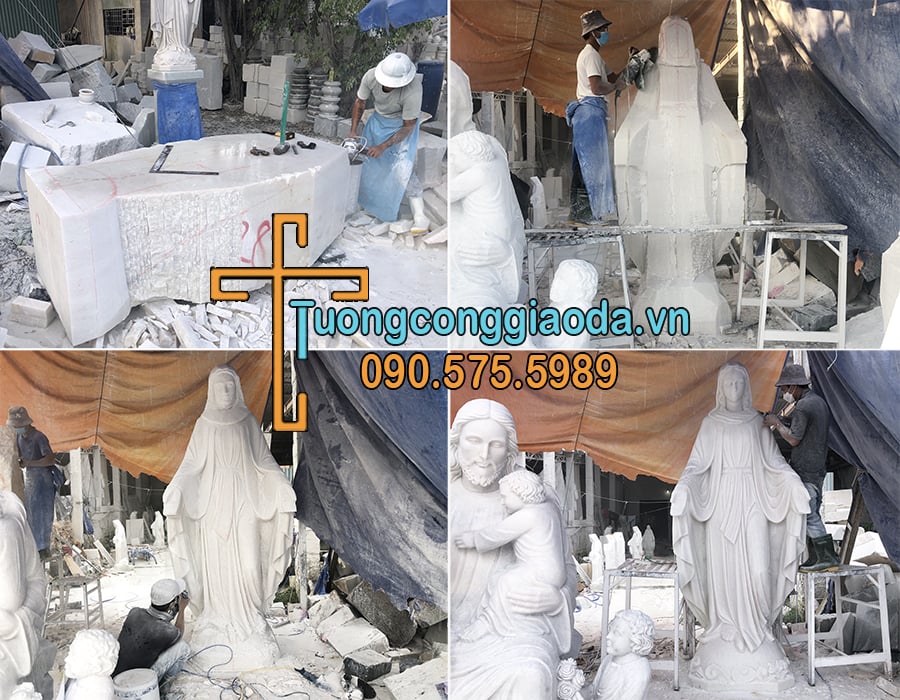 - Trên là hình ảnh từng công đoạn chế tác tượng đức mẹ tại xưởng, để các quý khách hàng có cái nhìn tổng quan hơn về quá trình điêu khắc một bức tượng.