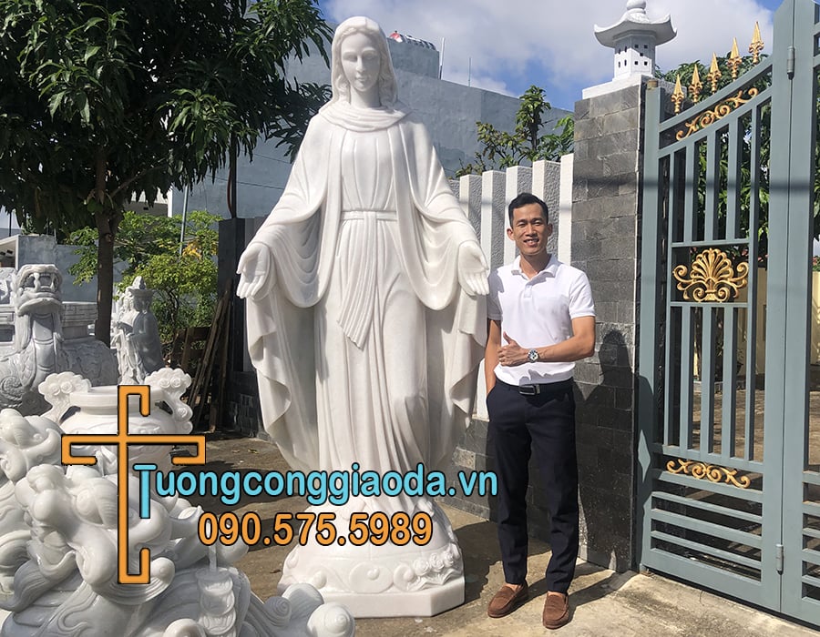2. Điêu Khắc Tượng Đức Mẹ Ban Ơn Bằng Đá Trắng Đẹp Cao 2m5.