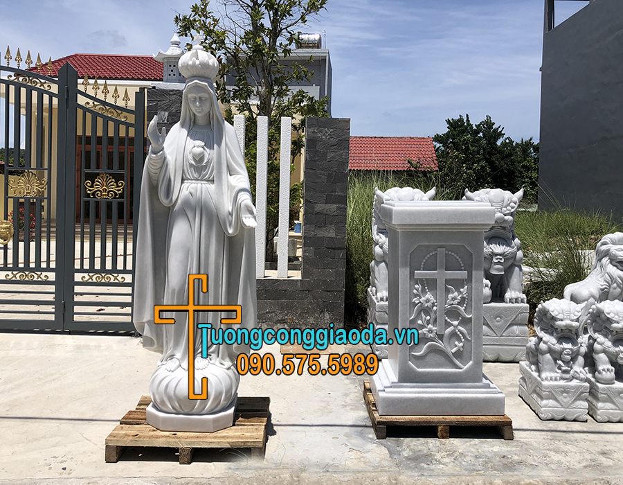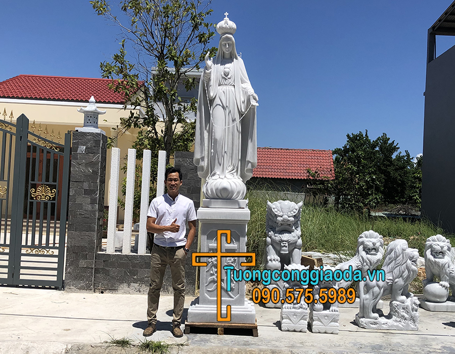 - Mẫu Tượng Đức Mẹ Fatima Giang Tay Bằng Đá Trắng Đẹp kích thước cao 3m2 được hoàn thiện cho khách tại Nam Định. Được chế tác từ chất liệu đá cẩm thạch nguyên khối 100%, loại 1, theo mẫu của khách hàng.