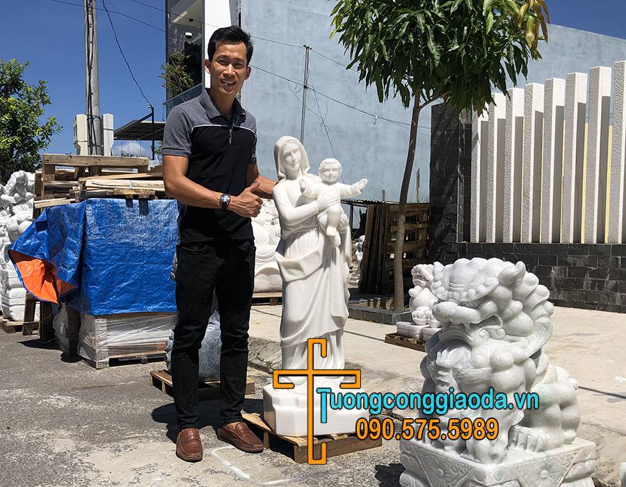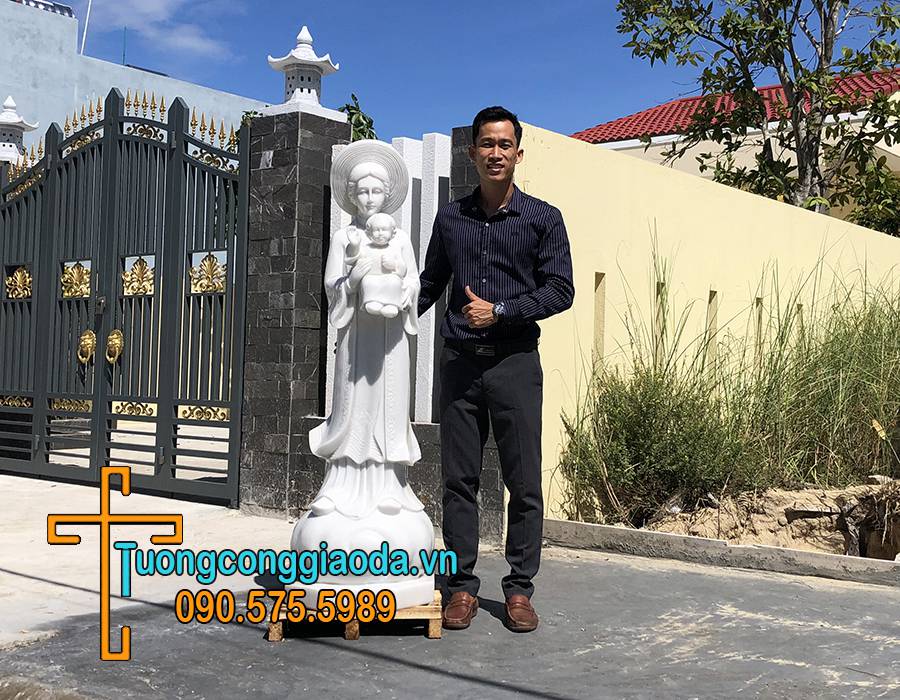 - Mẫu Tượng Đức Mẹ La Vang Bồng Chúa Con Bằng Đá Trắng Đẹp kích thước cao 1m5 được hoàn thiện cho khách tại Thừa Thiên Huế. Được chế tác từ chất liệu đá cẩm thạch nguyên khối 100%, loại 1, theo mẫu của khách hàng.