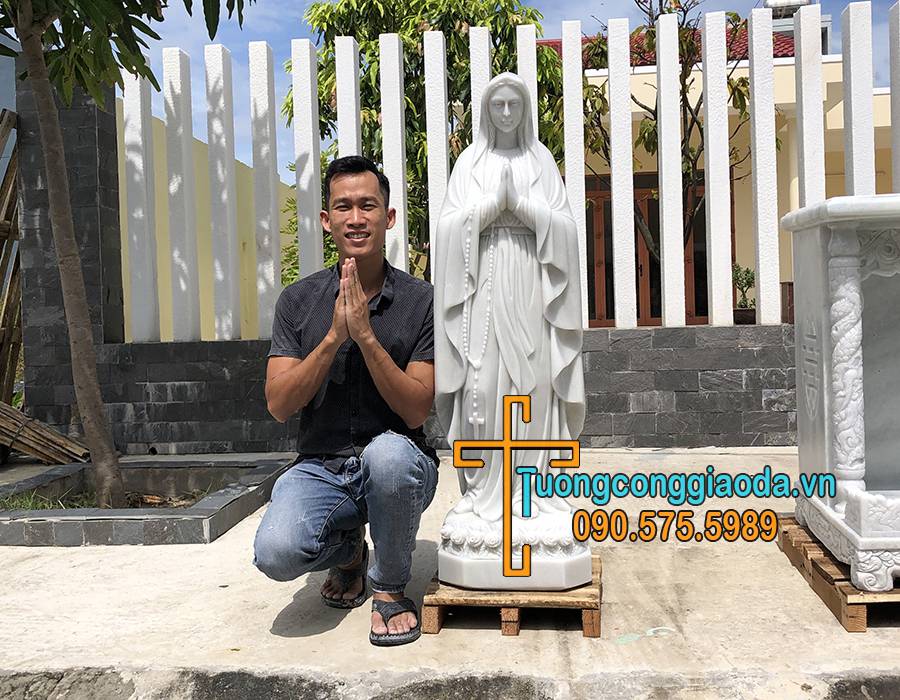 - Mẫu Tượng Đức Mẹ Lộ Đức Đá Trắng Thờ Tại Gia kích thước cao 1m2 được hoàn thiện cho khách tại Đồng Nai. Được chế tác từ chất liệu đá cẩm thạch nguyên khối 100%, loại 1, theo mẫu của khách hàng.