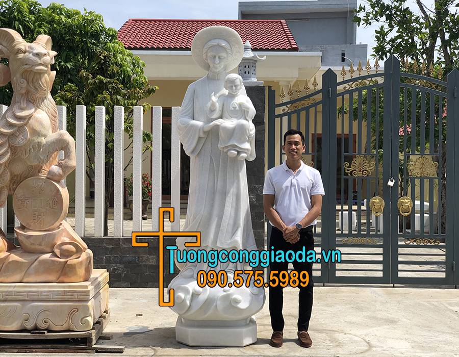 - Mẫu Tượng Đức Mẹ Maria Bồng Chúa Bằng Đá Đẹp Tại Nam Định kích thước cao 1m8 được hoàn thiện cho khách hàng. Được chế tác từ chất liệu đá cẩm thạch nguyên khối 100%, loại 1, theo mẫu của khách hàng.